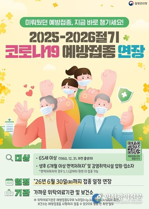 [인천광역신문] 최예준 기자 | 울산시가 올해 여름철 코로나19 재유행 가능성을 대비해 당초 4월 30일 종료 예정인 2025-2026절기 코로나19 예방접종 기간을 오는 6월 30일까지 연장한다고 밝혔다.