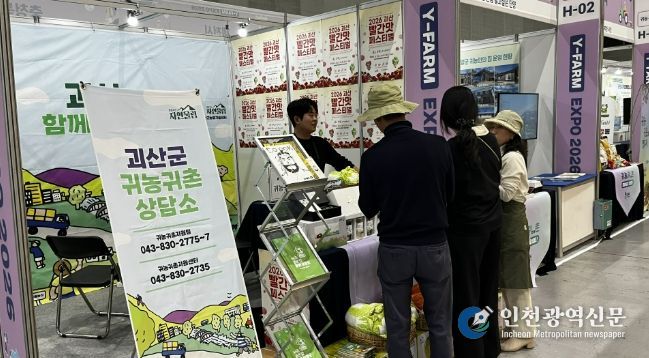 [인천광역신문] 최예준 기자 | 충북 괴산군은 지난 24일부터 26일까지 수원컨벤션센터에서 열린 ‘A-FARM EXPO 2026 귀농귀촌박람회’에 참가해 귀농·귀촌을 준비하는 도시민을 대상으로 괴산군의 다양한 정책을 홍보했다고 28일밝혔다.