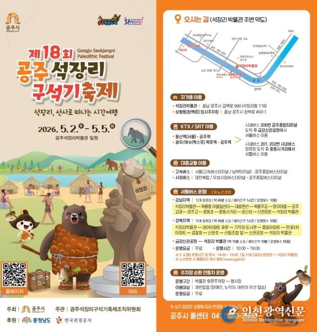 [인천광역신문] 최예준 기자 | 공주시는 오는 5월 2일부터 5일까지 개최되는 ‘제18회 공주 석장리 구석기축제’를 앞두고, 관람객의 이동 편의를 높이기 위한 교통 대책을 마련하고 적극 홍보에 나섰다.