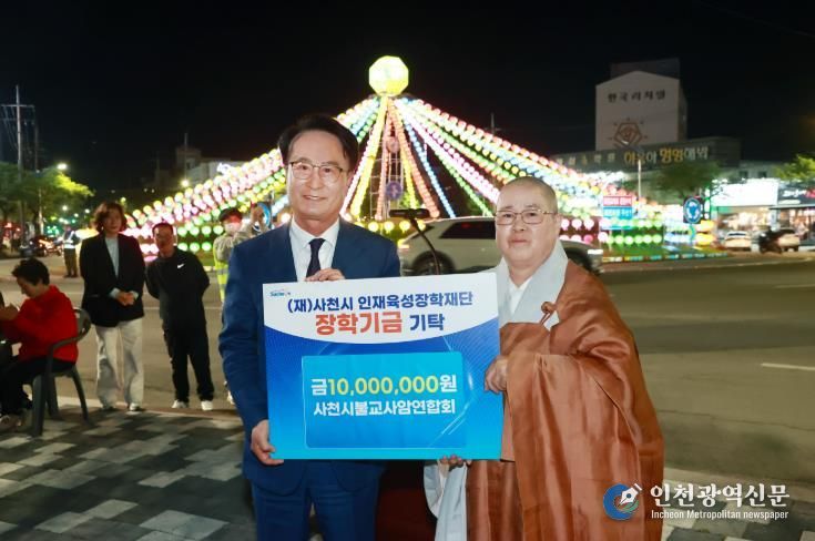 이번 기탁은 부처님 오신 날을 기념해 온 세상에 지혜의 등불을 밝히듯, 사천의 미래를 이끌어갈 학생들에게 희망의 빛을 전하고자 마련됐다.