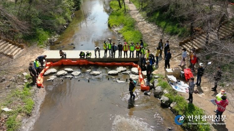 [인천광역신문] 최예준 기자 | 인천 남동구는 최근 만수동 장수천 일원에서 수질오염사고 대응 역량 강화를 위한 유관기관 합동 방제 훈련을 실시했다고 28일 밝혔다.