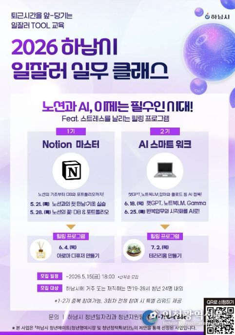 [인천광역신문] 최예준 기자 | 하남시는 관내 청년들이 현장에서 바로 활용할 수 있는 실무 역량을 키우고 또래 청년 간 교류 기회를 확대하기 위해 오는 5월부터 ‘2026년 하남시 일잘러 실무클래스’를 운영하고 1기와 2기 참여자를 모집한다고 밝혔다.
