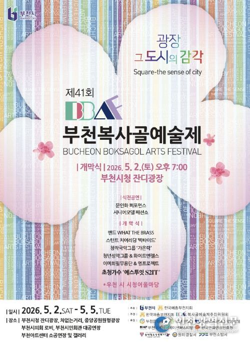 [인천광역신문] 최예준 기자 | 부천시는 ‘제41회 부천복사골예술제’를 5월 2일부터 5일까지 4일간 부천시청 잔디광장과 중앙공원, 부천아트센터 일원에서 연다.