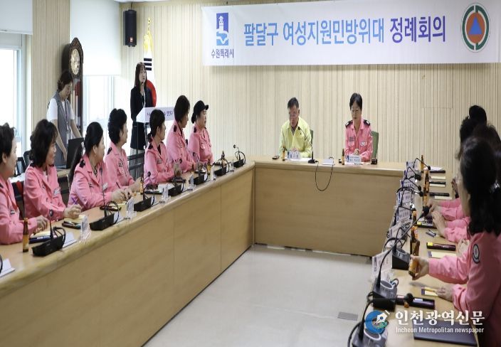 [인천광역신문] 최예준 기자 | 수원시 팔달구는 지난 27일, 팔달구청 상황실에서 여성지원민방위대 4월 정례회의를 개최했다.
