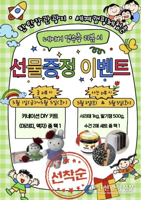 [인천광역신문] 최예준 기자 | 연천군시설관리공단은 가정의 달을 맞이해 오는 5월 1일부터 5월 5일 내 한탄강관광지 오토캠핑장 및 세계캠핑체험존을 방문하는 가족 단위 관광객을 위한 참여형 이벤트를 운영한다.