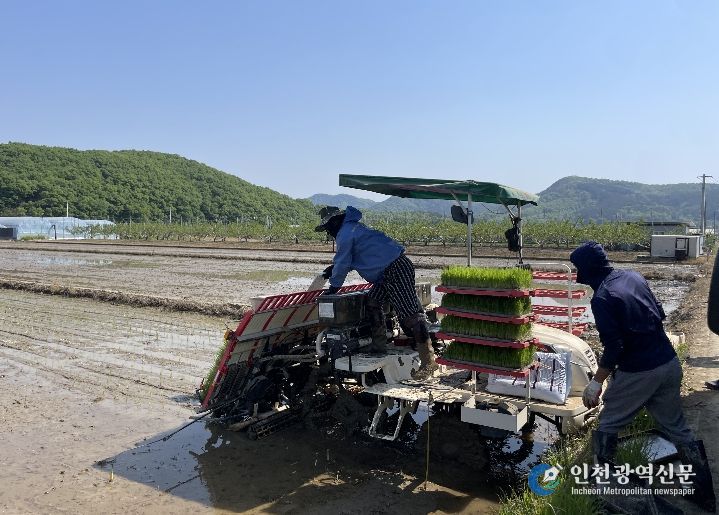 [인천광역신문] 최예준 기자 | 경산시 자인면 울옥리 신호철 농가는 27일 자인면 원당들 일원 6ha에 올해 첫 모내기를 실시했다.