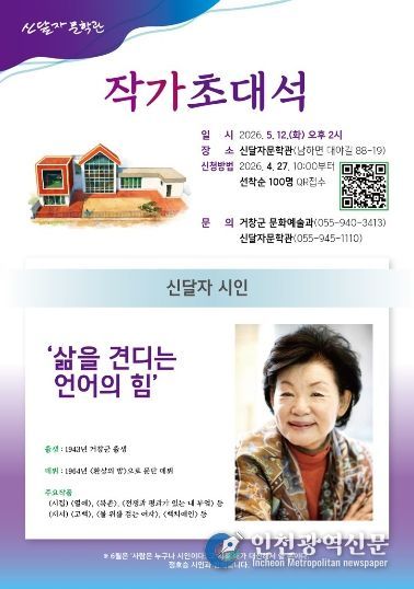[인천광역신문] 최예준 기자 | 거창군은 오는 5월 12일 오후 2시 신달자문학관에서 ‘작가초대석’ 강연을 개최한다.