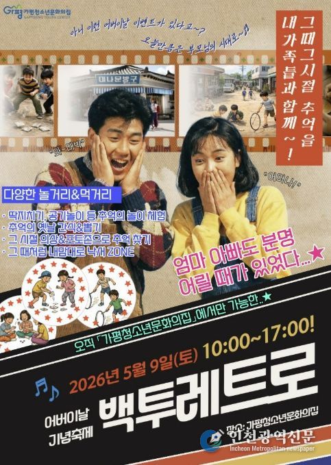 [인천광역신문] 최예준 기자 | 가평청소년문화의집이 어버이날을 앞두고 5월 9일 세대 간 공감과 소통을 위한 체험형 프로그램 ‘어버이날: 백투레트로’를 운영한다.