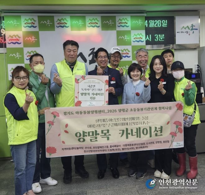 [인천광역신문] 최예준 기자 | 양평군 서종면은 경기도 아동돌봄양평센터와 풀씨배움터 지역아동센터 아동들이 어버이날을 맞아 정성껏 만든 ‘양말목 카네이션’ 63개를 전달하며 따뜻한 나눔을 실천했다고 밝혔다.