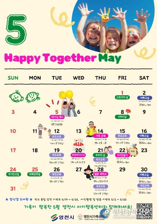 [인천광역신문] 최예준 기자 | 영천시는 5월 가정의 달을 맞아, 아이와 가족이 함께 즐길 수 있는 ‘아이행복 통합 페스타’를 운영한다고 28일 밝혔다.