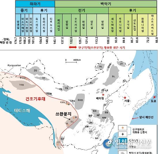 국립대구과학관 최병도 박사와 중국 난징지질고생물학연구소 공동연구팀은 중국 남부 쓰촨분지의 백악기 전기(약 1억 3천만 년 전) 지층에서 발견된 20종의 담수 개형충을 기반으로 이들의 분포와 진화가 테티스해(Tethys Ocean)라는 고대 바다의 영향을 강하게 받았다는 결과를 새롭게 제시했다.