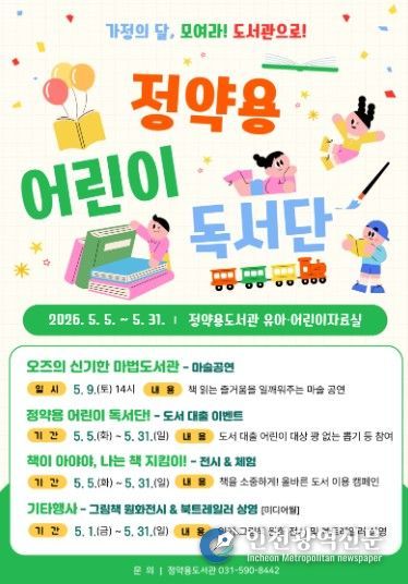 [인천광역신문] 최예준 기자 | 남양주시는 가정의 달을 맞아 5월 5일부터 31일까지 정약용도서관에서 ‘모여라! 정약용 어린이 독서단’ 행사를 운영한다고 28일 밝혔다.