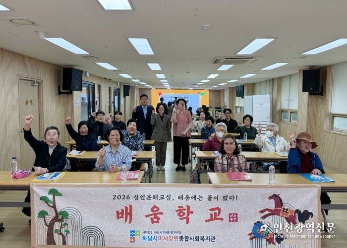 [인천광역신문] 최예준 기자 | 하남시미사강변종합사회복지관은 지난 20일 2026년 하남시 성인문해교육 지원사업 제4회 배움학교 개강식을 진행하고, 배움의 기회를 놓친 성인 학습자를 위한 문해교육의 힘찬 출발을 알렸다고 밝혔다.