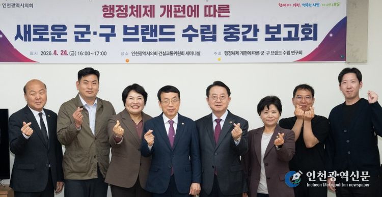 [인천광역신문] 최예준 기자 | 인천광역시의회 ‘행정체제 개편에 따른 군·구 브랜드 수립 연구회(대표의원 허식)’는 최근 시의회 건설교통위원회 세미나실에서 새로운 군ㆍ구 브랜드 수립을 위한 연구용역 중간보고회를 개최했다고 28일 밝혔다.