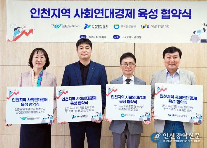 [인천광역신문] 최예준 기자 | 인천국제공항공사는 사회적 기업 등 인천지역 사회연대경제를 활성화하기 위해 인천소재 공공기관 및 인천대학교 창업지원단과 ‘인천지역 사회연대경제 육성을 위한 상호협력 업무협약’을 체결했다고 밝혔다.