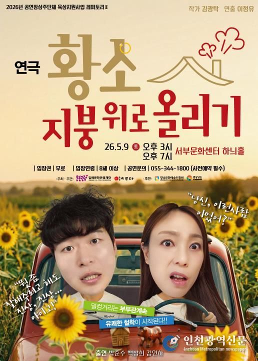[인천광역신문] 최예준 기자 | (재)김해문화관광재단 김해서부문화센터는 경남문화예술진흥원이 주관하는 ‘2026 공연장상주단체 육성지원사업’에 선정되어, 오는 5월 9일 두 번째 레퍼토리 공연 연극 '황소, 지붕위로 올리기'를 선보인다.