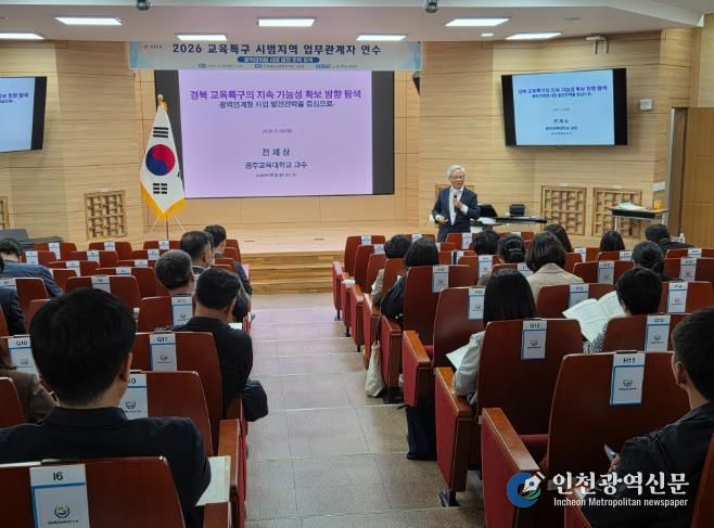 [인천광역신문] 최예준 기자 | 경북교육청은 28일 구미시에 있는 경상북도교육청연수원 소강당에서 도내 15개 교육특구 시범 지역의 교육지원청과 지자체 관계자 80여 명이 참석한 가운데 ‘2026 교육특구 시범지역 업무 관계자 연수’를 개최했다고 밝혔다.