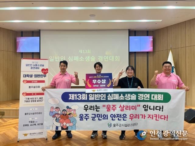 [인천광역신문] 최예준 기자 | 울주군시설관리공단은 4월 27일, 울산소방본부가 주최한 제13회 일반인 심폐소생술 경연대회에서 청소년부 ‘최우수상’과 대학·일반부 ‘우수상’을 동시에 수상하며 지역사회 안전문화 확산에 앞장서는 기관으로서의 위상을 다시 한번 입증했다.
