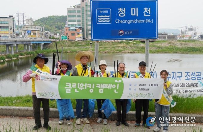 [인천광역신문] 최예준 기자 | 이천시는 이천시 청미노인복지관(관장 최대열)의 선배시민 자원봉사단 ‘그린이음’이 지난 4월 27일 청미천 일대에서 클린워킹, 일명 ‘줍깅’ 캠페인을 진행했다고 밝혔다.