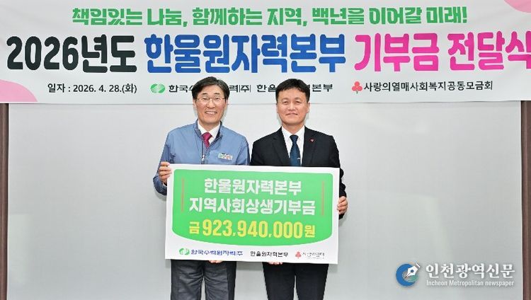 [인천광역신문] 최예준 기자 | 한국수력원자력(주) 한울원자력본부는 창립 25주년을 맞아 4월 28일(화) 경북사회복지공동모금회에 총 9억 2천 3백만원의 기부금을 전달했다.