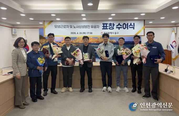 [인천광역신문] 최예준 기자 | 울산 동구는 4월 28일 오후 5시 30분 동구청 2층 상황실에서 모범 근로자 및 노사 상생발전 유공자 10명에게 표창을 수여했다.