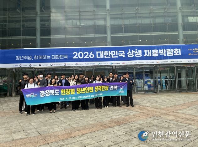 [인천광역신문] 최예준 기자 | 충북도는 28일 도내 현장형 청년인턴 34명을 대상으로 서울 aT센터에서 열린 ‘2026 대한민국 상생 채용박람회’에서 정책현장견학을 실시했다.