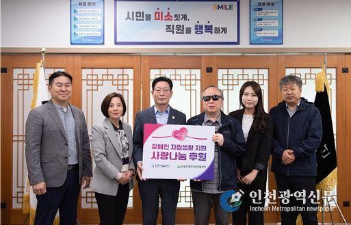 [인천광역신문] 최예준 기자 | 인천시설공단은 28일 장애인의 안정적인 자립과 사회 복귀를 지원하고자 인천광역시 서구에 있는 큰솔장애인자립생활센터에 임직원 급여 우수리 모금액 300만원을 전달했다.
