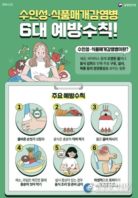 보건소 관계자는 수인성·식품매개감염병 예방을 위한 6대 수칙으로 ▲흐르는 물에 30초 이상 비누로 손 씻기 ▲음식은 충분히 익혀 먹기 ▲물은 끓여 마시기 ▲채소·과일은 깨끗이 씻어 먹기 ▲설사 증상 시 음식 조리·준비 금지 ▲조리기구 구분 사용, 소독 등 위생적 조리를 실천해 줄 것을 당부했다.
