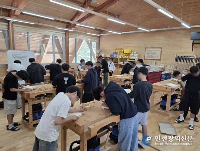 [인천광역신문] 최예준 기자 | 상주시 성주봉자연휴양림의 상주목재문화체험장과 힐링센터에서는 지난 4월 27일 안동경덕중학교 학생들 150여명을 대상으로 목재문화체험장과 힐링센터에서 독서대 만들기 체험과 숲 해설 체험을 진행했다.