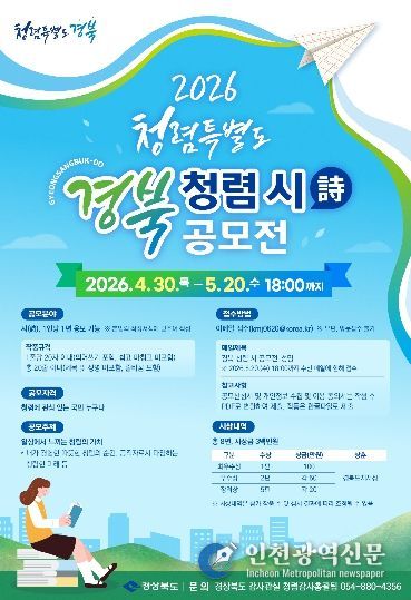 [인천광역신문] 최예준 기자 | 경상북도는 일상 속 청렴에 대한 국민의 다양한 생각을 시로 나누는 ‘청렴특별도 경북 청렴 시(詩) 공모전’을 개최한다.