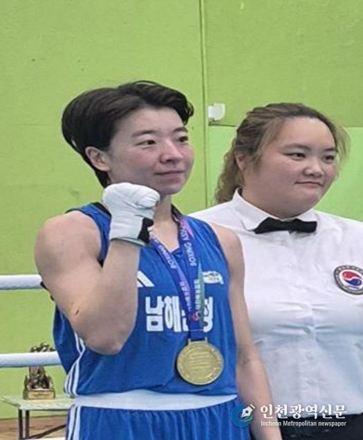 [인천광역신문] 최예준 기자 | 남해군은 지난 4월 14일부터 24일까지 경상북도 영주시에서 열린 ‘2026 전국종별복싱선수권대회’에 출전한 남해군청 복싱팀의 강지숙 선수가 여자부 –65kg급에서 금메달을 획득했다고 밝혔다.