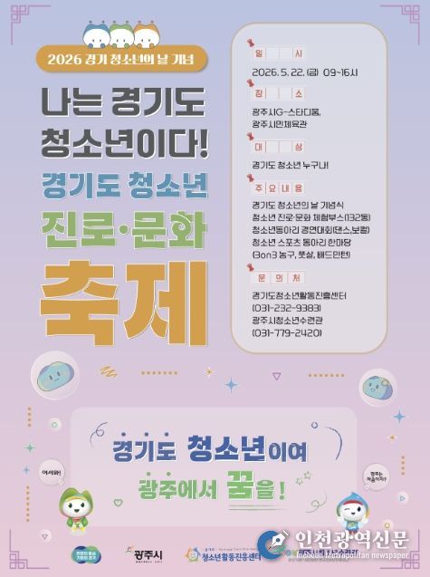 [인천광역신문] 최예준 기자 | 광주시는 오는 5월 22일 광주시 G-스타디움 및 광주시민체육관 일원에서 ‘2026년 경기도 청소년 진로·문화 축제’를 개최한다고 29일 밝혔다.