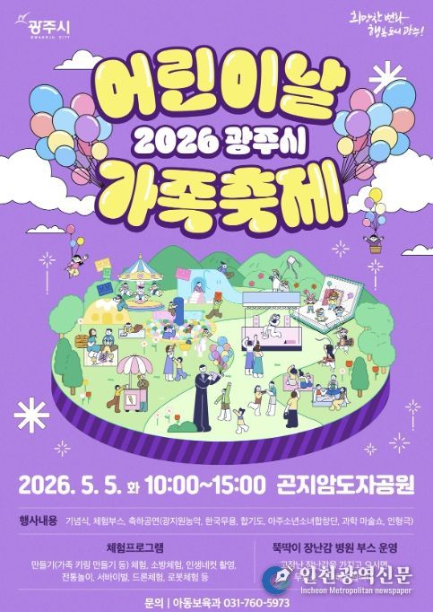 [인천광역신문] 최예준 기자 | 광주시는 제104회 어린이날을 맞아 오는 5월 5일 오전 10시 곤지암도자공원에서 ‘어린이날 가족축제’를 개최한다.