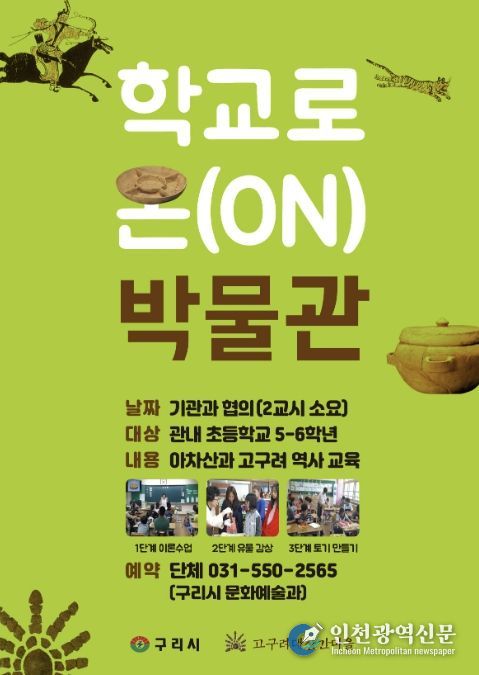 [인천광역신문] 최예준 기자 | 구리시는 4월 28일부터 오는 9월까지 고구려 유물 상자를 들고 관내 초등학교를 찾아가는 ‘학교로 온(ON) 박물관’프로그램을 운영한다고 밝혔다.