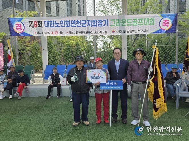 [인천광역신문] 최예준 기자 | 대한노인회 연천군지회는 지난 27일 연천군 공설운동장 인조 잔디 구장에서 제8회 지회장기 그라운드 골프대회를 개최했다.