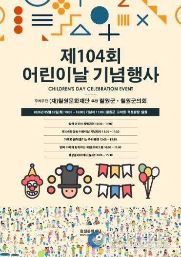 [인천광역신문] 최예준 기자 | (재)철원문화재단은 오는 5월 5일 어린이날을 맞아 고석정 일원에서 ‘제104회 어린이날 기념행사’를 개최한다고 밝혔다.