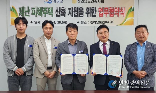 [인천광역신문] 최예준 기자 | 영광군은 전라남도건축사회와 지난 28일 ‘재난 피해 주택 신축 지원을 위한 업무협약’을 체결하고, 재난 피해 주민의 신속한 주거 안정 지원에 나서겠다고 밝혔다.
