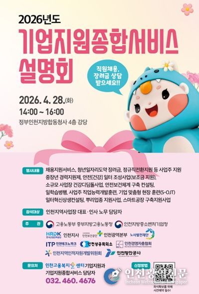 [인천광역신문] 최예준 기자 | 중부지방고용노동청은 인천지방중소벤처기업청 등 유관기관과 함께 4월 28일 오후 2시 정부인천지방합동청사에서 ‘기업지원 종합서비스’ 설명회를 개최했다.