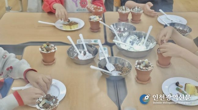 수업은 불이나 오븐을 사용하지 않는 안전한 방식으로 진행됐다. 1~2교시에는 카스테라와 생크림, 젤리 등을 활용해 ‘나만의 컵케이크’를 만들며 학생들이 재료의 색과 모양을 조합해 개성과 상상력을 표현했다. 이어 3~4교시에는 오트밀과 초콜릿을 활용한 ‘오트밀 초코 에너지볼’ 만들기를 통해 재료를 섞고 빚는 과정을 경험했다.