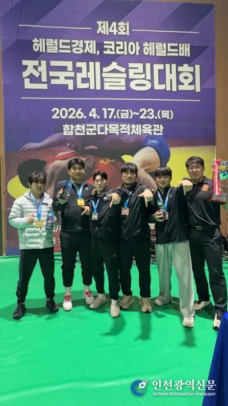[인천광역신문] 최예준 기자 | 칠곡군청 레슬링팀이 17일부터 합천다목적체육관에서 개최된‘제4회 헤럴드경제· 코리아헤럴드배 전국레슬링대회’에서 금메달 1개와 은메달 2개, 동메달 2개를 획득하며 단체종합우승을 거머쥐었다.