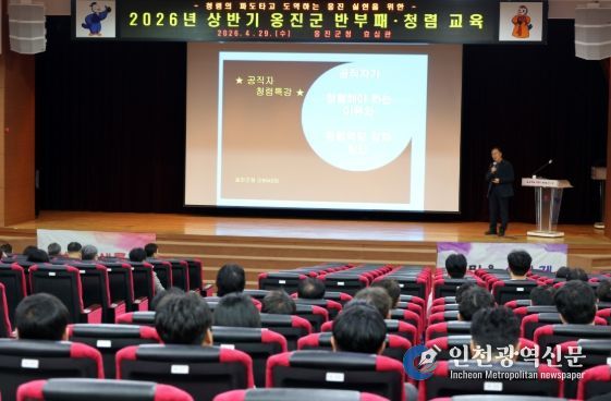 [인천광역신문] 최예준 기자 | 옹진군은 지난 29일 군청 효심관에서 전 직원을 대상으로 공직윤리 의식 고취를 위한 ‘2026년 상반기 공직자 반부패·청렴 교육’을 실시했다고 밝혔다.