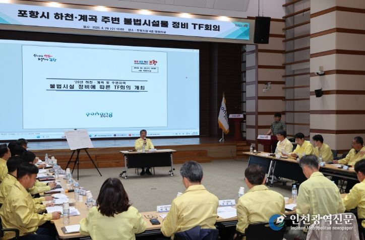 [인천광역신문] 최예준 기자 | 포항시가 29일 본격적인 행락철을 앞두고 하천과 계곡 내 불법행위를 근절하기 위해 ‘하천·계곡 불법시설물 정비 TF 회의’를 개최하고 전면적인 단속 및 정비 체계에 돌입한다.