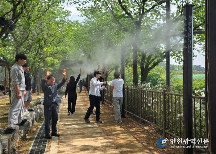 [인천광역신문] 최예준 기자 | 남양주시 진건읍은 여름철 폭염 대응을 위해 사능천 맨발걷기길에 ‘쿨링포그(Cooling Fog)’를 설치했다고 29일 밝혔다.