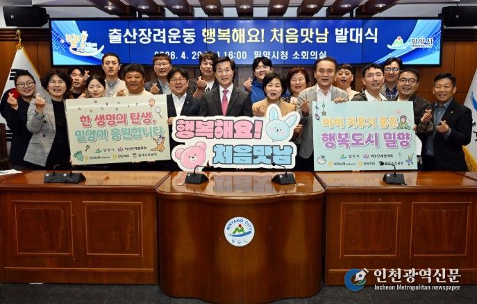 [인천광역신문] 최예준 기자 | 경남 밀양시는 29일 시청 소회의실에서 밀양시여성단체협의회, 농협은행 밀양시지부, 밀양축산농협, 관내 소상공인 등 관계자 22명이 참석한 가운데 출산장려운동 ‘행복해요! 처음맛남’ 발대식을 개최했다.