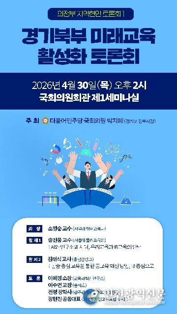 [인천광역신문] 최예준 기자 | 더불어민주당 박지혜 의원(의정부시갑)은 오는 30일 오후 2시, 국회의원회관 제1세미나실에서 '경기북부 미래교육 활성화 토론회'를 개최한다.