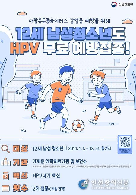[인천광역신문] 최예준 기자 | 부산시는 오는 5월 6일부터 12세 남성 청소년(2014년생)을 대상으로 사람유두종바이러스(Human Papilomavirus,) 백신 국가예방접종지원사업을 신규 시행한다고 밝혔다.