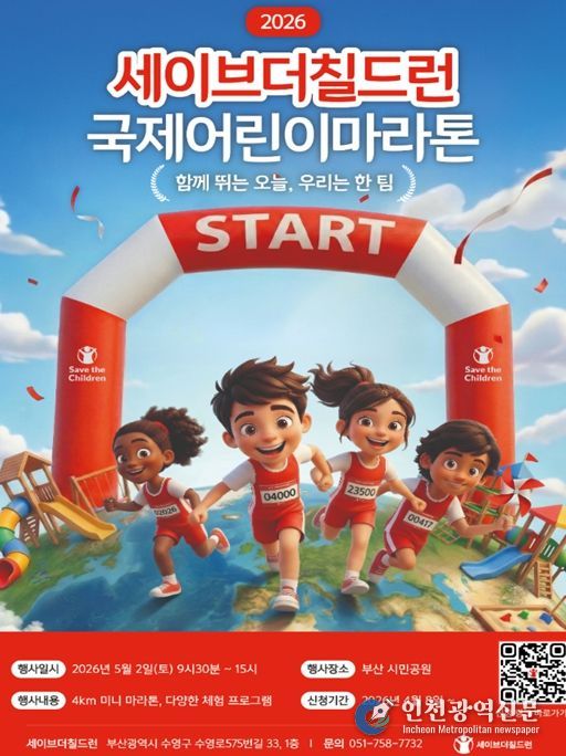 [인천광역신문] 최예준 기자 | 부산시는 오는 5월 2일 오전 9시 30분 부산시민공원에서 '2026 세이브더칠드런 국제어린이마라톤'을 개최한다고 밝혔다.