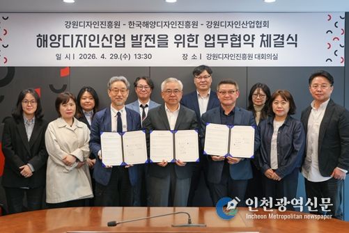 [인천광역신문] 최예준 기자 | 강원디자인진흥원은 해양디자인 산업의 경쟁력 강화와 지역 기반 산업 활성화를 위해 관련 기관과 협력 체계를 구축했다.