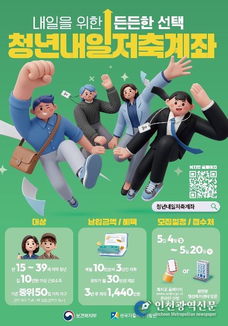 [인천광역신문] 최예준 기자 | 영등포구가 자립을 준비하는 청년에게 든든한 종잣돈이 될 수 있는 ‘청년내일저축계좌’의 신규 가입자를 5월 4일부터 20일까지 모집한다고 밝혔다.
