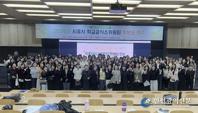 [인천광역신문] 최예준 기자 | 시흥시학교급식지원센터는 지난 4월 28일 서울대학교 시흥캠퍼스 교육협력동에서 ‘2026년 학교급식소위원회 학부모 연수’를 진행했다. 이날 연수에는 관내 유치원과 초중고 학부모 160여 명이 참석해 학교 급식 운영에 관한 높은 관심을 보였다.